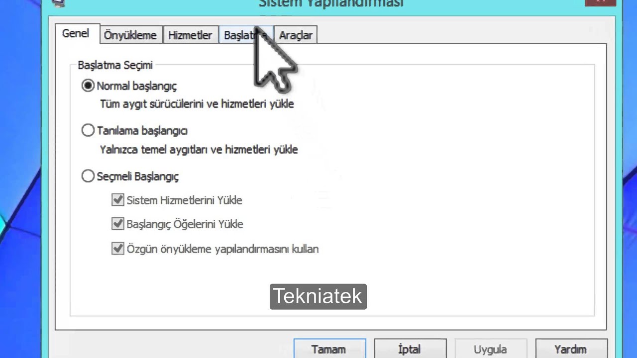 - Sistem Yapılandırması penceresinde Başlangıç sekmesine tıklayın.